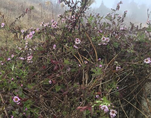 Chiamato “l’Aster che si arrampica†in quanto ha appunto infiorescenze molto simili a quelle degli Aster. Ogni fiore ha il centro giallo e petali (ligule) stretti di color rosa chiaro. Caratteristico il periodo di fioritura, da metà ottobre a fine dicembre. Arbusto che arrampica fino ai 5-6m di altezza grazie ai suoi lunghi getti laterali, lunghi da 1m fino anche a 2m e più. Sole o mezz’ombra.