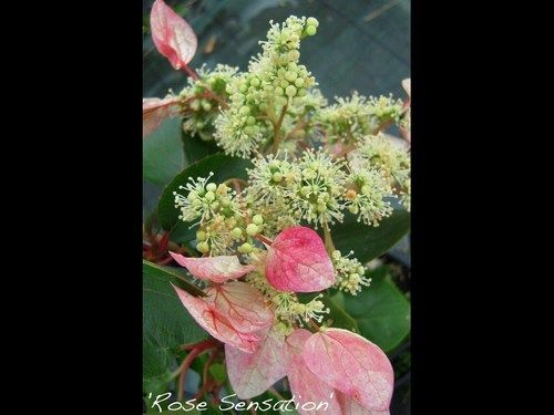 Distinguono questa Schizophragma: le brattee fiorali sfumate di rosa con colorazione accentuata, e la maggiore vigoria.