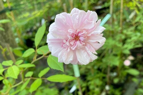 Fogliame deciduo, lucido, verde scuro. La fioritura è continua dalla primavera all’autunno. I fiori sono rosa chiaro, doppi, quartati ed intensamente profumati.