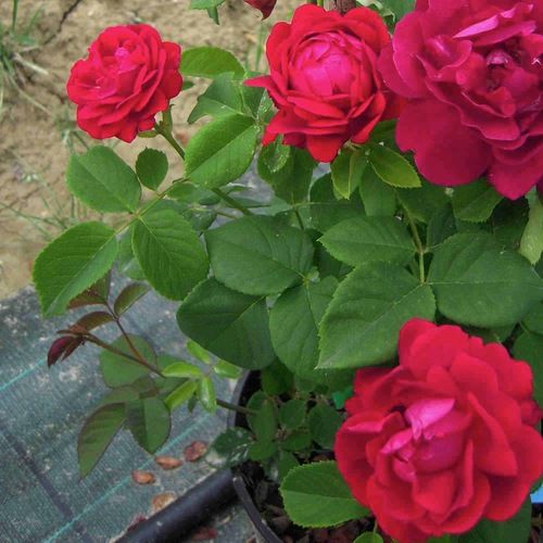 Fogliame deciduo, verde opaco. Rifiorente, i fiori sono di color rosso scuro doppi, intensamente profumati.