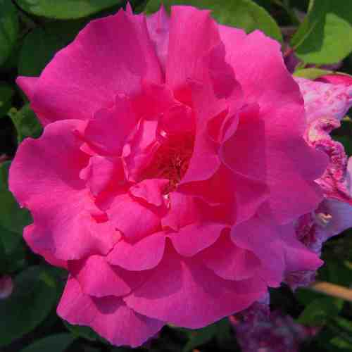 Fogliame deciduo, verde scuro. Rifiorente, i fiori sono rosa, doppi e quartati, intensamente profumati.