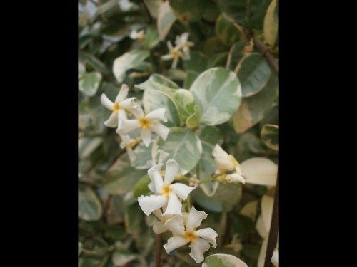 Distinguono questo Trachelospermum: fogliame veriegato verde e crema, fioritura bianca profumata.